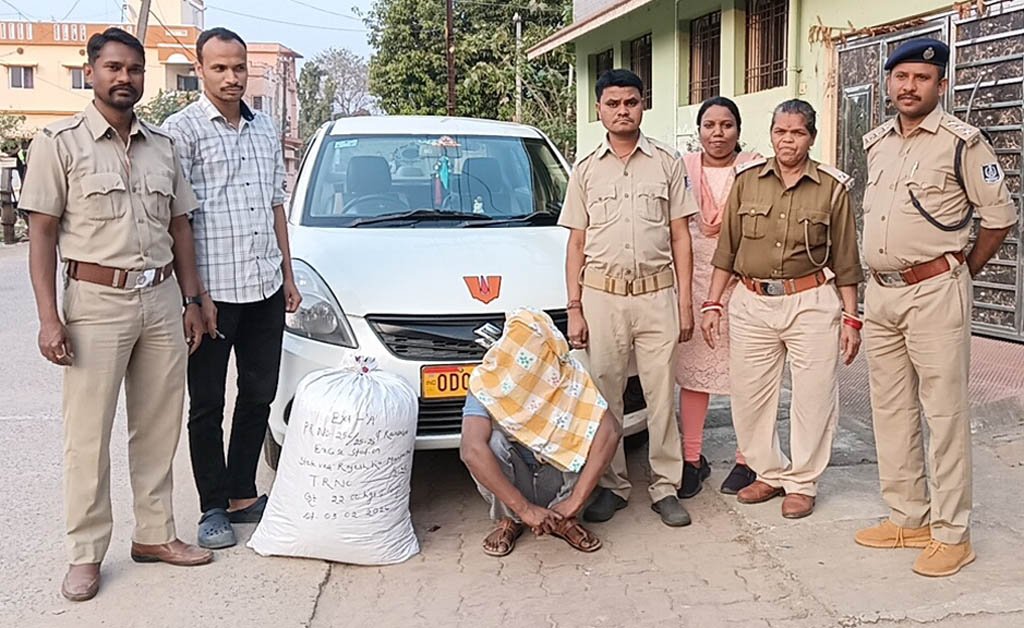 କାର ସହ ୨୨ କେଜି ଗଂଜେଇ ଜବତ। ଜଣେ ଗିରଫ