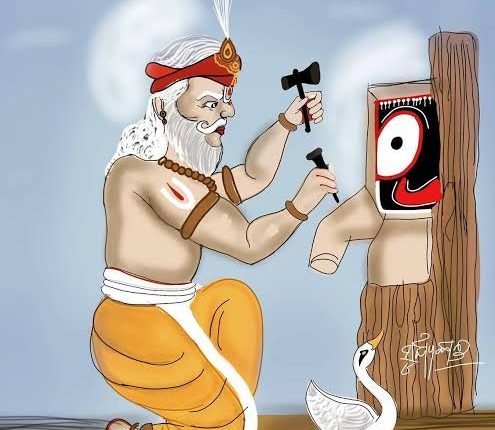 ସମସ୍ତେ ଆଶ୍ଚର୍ଯ୍ୟ, ଆରେ କେତେ କେତେ ଲୋକ ଥକି ଗଲେଣି ଏ ବୁଢ଼ାଟା କହୁଛି ଦିଅଁ ଗଢ଼ିଦେବ l ଏମିତି କଥାବାର୍ତ୍ତା ଚାଲିଥିଲା ବେଳେ ବୃଦ୍ଧ ବର୍ଦ୍ଧକୀ ନିଜର ବୃଦ୍ଧାଙ୍ଗୁଳି ନଖରେ, ଦାରୁକୁ ଟିକିଏ ଆଞ୍ଚୁଡ଼ି ଦେବାରୁ ଦାରୁରୁ ବକଳ ଛାଡ଼ିଗଲା l ରାଜାଙ୍କ ସ୍ଵପ୍ନ କଥା ସ୍ମରଣ ହେଲା, ହଁ ପ୍ରଭୁ ତ କହିଥିଲେ, ଜଣେ ବୃଦ୍ଧବର୍ଦ୍ଧକୀ ଆସି ପହଞ୍ଚିବ ଦିଅଁ ଗଢ଼ିଦେବା ପାଇଁ l ରାଜାଙ୍କ ବିଶ୍ୱାସ ହେଲା l ସେହି ବୃଦ୍ଧଙ୍କୁ ମହାରଣା ରୂପେ ବରଣ କଲେ ମହାରାଜା l