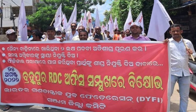ବିଭିନ୍ନ ଦାବୀ ନେଇ (DYFI) ପକ୍ଷରୁ RDC ଅଫିସ ସମ୍ମୁଖରେ ବିକ୍ଷୋଭ ଓ ରାଷ୍ଟ୍ରପତିଙ୍କ ଉଦ୍ୟେଶରେ ସ୍ମାରକପତ୍ର ପ୍ରଦାନ