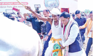 କଟକ : ଲଙ୍ଗଳ ଧରି ହଳ କଲେ, ବିହନ ବୁଣିଲେ। ମୁଖ୍ୟମନ୍ତ୍ରୀ ମୋହନ ଚରଣ ମାଝୀ ଆଜି ଅଖିମୁଠି ଅନୁକୂଳ କରିଛନ୍ତି। କଟକରେ ଆୟୋଜିତ ହୋଇଥିବା ରାଜ୍ୟସ୍ତରୀୟ କୃଷକ ଦିବସ ଅବସରରେ କେନ୍ଦ୍ରୀୟ ଧାନ ଗବେଷଣା ଅନୁଷ୍ଠାନ-CRRIରେ ସ୍ବତନ୍ତ୍ର କାର୍ଯ୍ୟକ୍ରମ ହୋଇଛି। ଯେଉଁଠି ମୁଖ୍ୟମନ୍ତ୍ରୀ ସାମିଲ ହୋଇଥିଲେ। ପାରମ୍ପରିକ ରୀତିନୀତି ଅନୁସାରେ, ହୋମଯଜ୍ଞ ହେବା ସହ ଅକ୍ଷିମୁଠି ଅନୁକୂଳ କରିଛନ୍ତି ମୁଖ୍ୟମନ୍ତ୍ରୀ ମୋହନ ମାଝୀ।।ମୁଖ୍ୟମନ୍ତ୍ରୀଙ୍କ ସହ ଉପମୁଖ୍ୟମନ୍ତ୍ରୀ କେଭି ସିଂହ ଦେଓ ମଧ୍ୟ ଉପସ୍ଥିତ ଥିଲେ। ଏହି ଅବସରରେ ରାଜ୍ୟର ଚାଷୀଙ୍କୁ ସିଏମ୍ କିଷାନ ସହାୟତା ରାଶି ବି ପ୍ରଦାନ କରିବେ ମୁଖ୍ୟମନ୍ତ୍ରୀ। ଏଥି ସହିତ ମୁଖ୍ୟମନ୍ତ୍ରୀ ‘କୃଷି ରଥ’ ଏବଂ ‘ସିଡ୍ସ ଅନ ହ୍ବିଲ୍ସ’ ର ଶୁଭାରମ୍ଭ କରିବେ।