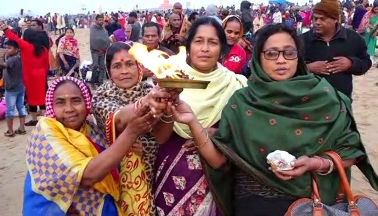 ବଡ଼ି ଭୋରରୁ ମହୋଦଧିରେ ବୁଡ଼ପକାଇ ଶ୍ରଦ୍ଧାଳୁ ମାନେ ଅପେକ୍ଷା କରିଥାନ୍ତି ସୂର୍ଯ୍ୟୋଦୟକୁ l ବାଳ ସୂର୍ଯ୍ୟ ଦର୍ଶନରେ ସେମାନେ ଗାଇ ଉଠିଥାନ୍ତି :-
