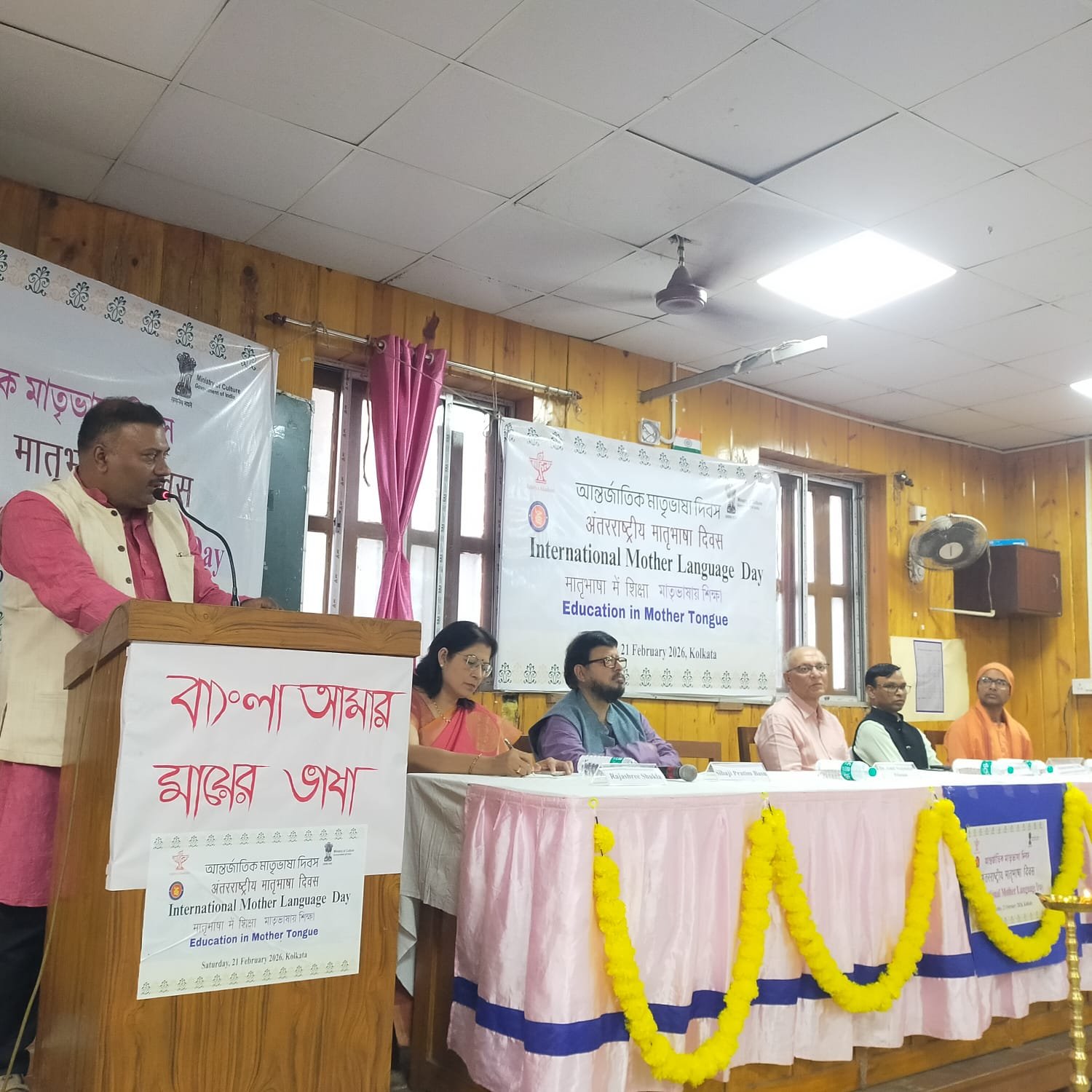 କୋଲକାତା, (୨୧/୨)ରିପୋର୍ଟ- ସନାତନ ମହାକୁଡ଼। ସ୍ଥାନୀୟ ମହାରାଜା ଶ୍ରୀଶଚନ୍ଦ୍ର ମହାବିଦ୍ୟାଳୟ ପରିସରରେ ସାହିତ୍ୟ ଅକାଦେମି ଏବଂ ଶ୍ରୀଶଚନ୍ଦ୍ର ମହାବିଦ୍ୟାଳୟର ମିଳିତ ଉଦ୍ୟମରେ ଆନ୍ତର୍ଜାତିକ ମାତୃଭାଷା ଦିବସ ପାଳିତ ହୋଇଯାଇଛି l ଏହି ଅବସରରେ ଆୟୋଜିତ ମାତୃଭାଷାରେ ଶିକ୍ଷା ଶୀର୍ଷକ ଆଲୋଚନାଚକ୍ରରେ ଅଧ୍ୟକ୍ଷତା କରିଥିଲେ ମହାବିଦ୍ୟାଳୟର ଅଧ୍ୟକ୍ଷ ଡ଼କ୍ଟର ଅମିତ ମଜୁମଦାର l ସ୍ୱାଗତ ଅଭିଭାଷଣ ପ୍ରଦାନ କରିଥିଲେ ସାହିତ୍ୟ ଅକାଦେମି କୋଲକାତା କାର୍ଯ୍ୟାଳୟର ସହାୟକ ସମ୍ପାଦକ କ୍ଷେତ୍ରବାସୀ ନାଏକ l ପ୍ରାରମ୍ଭରେ ମହାବିଦ୍ୟାଳୟର ଛାତ୍ରଛାତ୍ରୀମାନେ ବେଦ ମନ୍ତ୍ର ପାଠ ସହିତ ସ୍ୱାଗତ ସଂଗୀତ ପରିବେଷଣ କରିଥିଲେ l ଭାଷା ସହିଦମାନଙ୍କ ସ୍ମୃତିରେ ପୁଷ୍ପମାଲ୍ୟ ପ୍ରଦାନ ଏବଂ ଦ୍ବୀପ ପ୍ରଜ୍ବଳନ କରାଯାଇଥିଲା l ମାତୃଭାଷାରେ ଶିକ୍ଷା ବିଷୟରେ ଆଲୋଚନା କରିଥିଲେ ସ୍ୱାମୀ ଦିବ୍ୟପ୍ରଜ୍ଞାନନ୍ଦଜୀ (ସଂସ୍କୃତ), ପ୍ରଫେସର ଶିବାଜୀ ପ୍ରତିମ ବସୁ (ବଙ୍ଗଳା), ପ୍ରଫେସର ବିଦ୍ୟାନନ୍ଦ ଝା (ମୈଥିଲି), ପ୍ରଫେସର ରାଜଶ୍ରୀ ଶୁକ୍ଲା (ହିନ୍ଦୀ), ଡ଼କ୍ଟର ବୀଣାପାଣି ଦେବତା (ଓଡ଼ିଆ), ଡ଼କ୍ଟର ସୁବୋଧ ଚନ୍ଦ୍ର ହାଁସଦା (ସାନ୍ତାଳୀ) ଏବଂ ଡ଼କ୍ଟର ଋଷି ଭୂଷଣ ଚୌବେ (ଭୋଜପୁରୀ)l ଆଲୋଚକମାନେ ମତ ଦେଇଥିଲେ ଯେ ବିଶ୍ୱର ୭୦୦୦ ଭାଷା ମଧ୍ୟରୁ ୪୪ ପ୍ରତିଶତ ଭାଷା ସଙ୍କଟଜନକ ସ୍ଥିତିରେ ରହିଛି l କହିଵା, ଲେଖିବା ଏବଂ ପଢିବା ଦ୍ୱାରା ମାତୃଭାଷା ବଞ୍ଚିରହିବ ଏବଂ ସମୃଦ୍ଧ ହେବ l ପ୍ରାଥମିକ ସ୍ତରରେ ଶିକ୍ଷା ମାତୃଭାଷା ମାଧ୍ୟମରେ ପ୍ରଦାନ କରାଯିଵା ଜରୁରୀ l ସଚେତନ ବ୍ୟକ୍ତିବୃନ୍ଦ ଭାଷାବ୍ରତୀ ତଥା ଶିକ୍ଷବ୍ରତୀ ହେବାକୁ ଅତିଥିମାନେ ଆହ୍ୱାନ ଦେଇଥିଲେ l