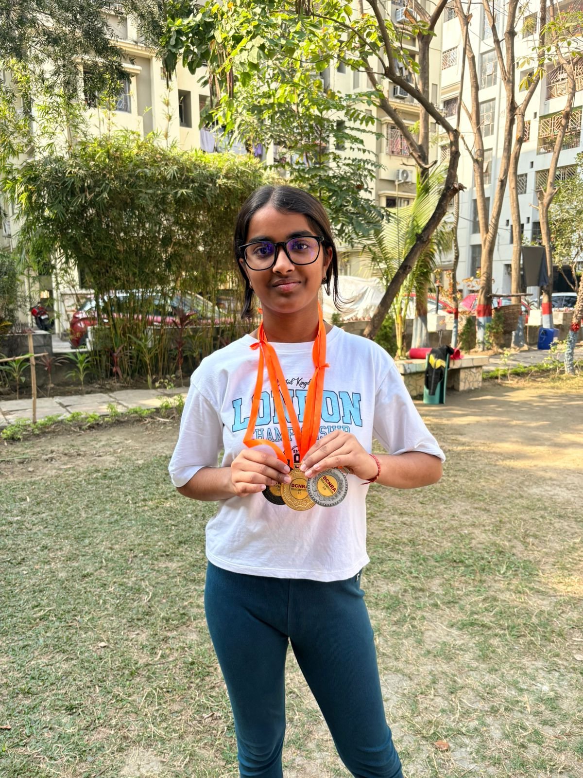 Two of her Gold medals were awarded for Partner Yoga, while the third Gold was won for performing the Suryantra Pose. She earned a Silver medal for Halasana and a Bronze medal for Purna Bhujangasana. In addition, she also participated in a Sit-ups Challenge during the competition.