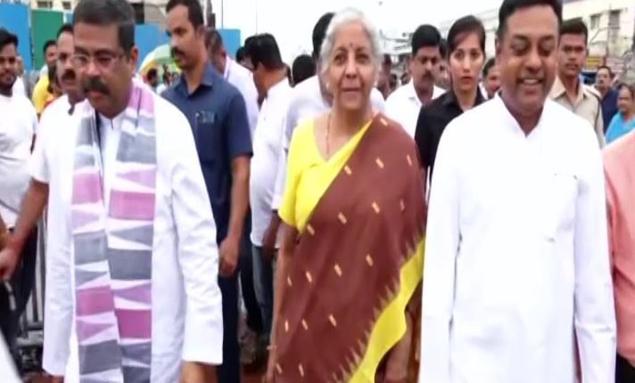 ପୁରୀ: ପୁରୀରେ କେନ୍ଦ୍ର ଅର୍ଥମନ୍ତ୍ରୀ ନିର୍ମଳା ସୀତାରମଣ । ଶ୍ରୀମନ୍ଦିର ଯାଇ ଶ୍ରୀଜୀଉଙ୍କୁ ଦର୍ଶନ କଲେ। ବେଢା ପରିକ୍ରମା, ପାର୍ଶ୍ଵ ଦେବାଦେବୀ ଓ ବିମଳା ମନ୍ଦିରରେ କଲେ ଦର୍ଶନ। ଭିତର କାଠ ନିକଟରେ ମହାପ୍ରଭୁଙ୍କୁ ଦର୍ଶନ କରିଥିବା ବେଳେ କିଛି ଦାନ ମଧ୍ୟ ପ୍ରଦାନ କରିଛନ୍ତି। ପ୍ରଶାସନ ପକ୍ଷରୁ ସ୍ୱତନ୍ତ୍ର ବ୍ୟବସ୍ଥା କରାଯାଇଥିବା ବେଳେ ସୁରକ୍ଷା ବ୍ୟବସ୍ଥା ଉପରେ ବିଶେଷ ଧ୍ୟାନ ଦିଆଯାଇଥିଲା । ଦର୍ଶନ ପରେ ଜିଲ୍ଲା ପ୍ରଶାସନ ପକ୍ଷରୁ ମହାପ୍ରଭୁଙ୍କ ଖଣ୍ଡୁଆ ଓ ଲାଗି ଭେଟି ସ୍ୱରୂପ ପ୍ରଦାନ କରାଯାଇଥିଲା। ତେବେ ଆଉ କିଛି ସମୟ ପରେ ପେଣ୍ଠକଟା ସ୍ଥିତ ସଦାଶିବ ସଂସ୍କୃତ ବିଶ୍ୱବିଦ୍ୟାଳୟର ହଷ୍ଟେଲରେ ବୃକ୍ଷରୋପଣ କାର୍ଯ୍ୟରେ ଯୋଗ ଦେବେ । ତାଙ୍କୁ ସ୍ୱାଗତ ପାଇଁ ବିଶ୍ୱବିଦ୍ୟାଳୟ ପକ୍ଷରୁ ବ୍ୟାପକ ବନ୍ଦୋବସ୍ତ କରାଯାଇଛି।