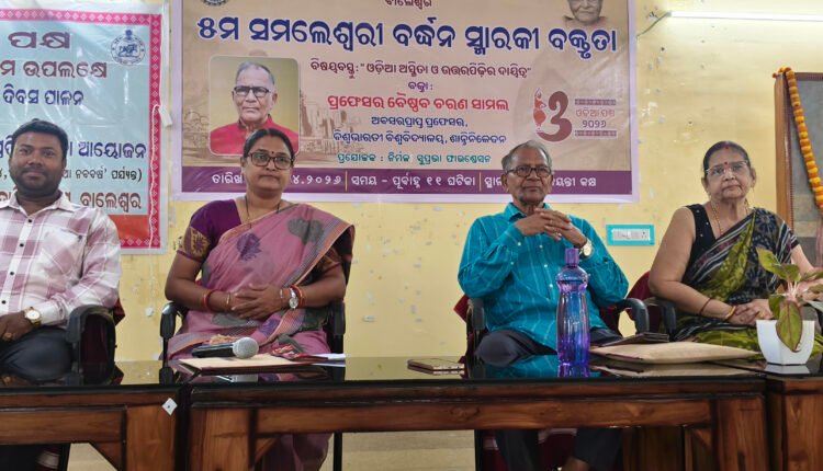ବାଲେଶ୍ବର, ୧୦ା୪(କୃଷ୍ଣ କୁମାର ମହାନ୍ତି): ନିଜ ଭିତରେ ‘ମୁଁ’କୁ ଆବିଷ୍କାର କରିବା ହେଉଛି ଅସ୍ମିତା। ଉତ୍ତରପିଢ଼ି ସ୍ବାର୍ଥ, ପଦଲେହନ ନୀତି ତ୍ୟାଗ କରି ନିଜକୁ ଭଲ ପାଇଲେ ଜାତିର ବିକାଶ ଓ ସୁସ୍ଥ ସମାଜ ଗଠନ ହୋଇପାରିବ। କୁନ୍ତଳା କୁମାରୀ ସାବତ ମହିଳା ମହାବିଦ୍ୟାଳୟ ସୁବର୍ଣ୍ଣ ଜୟନ୍ତୀ କକ୍ଷରେ ଗୁରୁବାର ୫ମ ସମଲେଶ୍ବରୀ ବର୍ଦ୍ଧନ ସ୍ମାରକୀ ବକ୍ତୃତା-୨୬ ଓ ସାରସ୍ୱତ ସମାରୋହରେ ମୁଖ୍ୟଅତିଥି ଓ ବକ୍ତା ଭାବେ ଯୋଗଦେଇ ଅବସରପ୍ରାପ୍ତ ପ୍ରଫେସର ବୈଷ୍ଣବ ଚରଣ ସାମଲ ଉପରୋକ୍ତ ବକ୍ତବ୍ୟ ରଖିଛନ୍ତି।