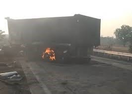 ସୁନ୍ଦରଗଡ଼ : ଜଳିଗଲା ୨ ଟ୍ରକ୍, ଡ୍ରାଇଭର ଜୀବନ୍ତ ଦଗ୍ଧ। ସୁନ୍ଦରଗଡ଼ ଜିଲ୍ଲା ହେମଗିର ଥାନା ରତନସରା ଡିବିଏଲ କ୍ୟାମ୍ପ୍ ନିକଟରେ ଏପରି ଭୟଙ୍କର ଦୁର୍ଘଟଣା ଘଟିଛି। ଦୁର୍ଘଟଣା ଏତେ ଭୟଙ୍କର ଥିଲା ଯେ, ଦୁର୍ଘଟଣା ପରେ ୨ଟି ଟ୍ରକ୍ ଜଳି ପୋଡି ପାଉଁଶ ହୋଇଯାଇଛି। ଏଥିରେ ଜଣେ ଡ୍ରାଇଭର ମଧ୍ୟ ଜୀବନ୍ତ ଦଗ୍ଧ ହୋଇଛନ୍ତି। ଖବର ପାଇ ଘଟଣାସ୍ଥଳରେ ପହଞ୍ଚି ନିଆଁକୁ ଆୟତ୍ତ କରିଛି ଅଗ୍ନିଶମ ବାହିନୀ। ଦୁର୍ଘଟଣା ପରେ ଘଟଣାସ୍ଥଳରେ ଉତ୍ତେଜନା ଦେଖାଦେଇଛି। ଅନ୍ୟପଟେ ଡ୍ରାଇଭରଙ୍କ ପରିଚୟ ମିଳିପାରିନାହିଁ।